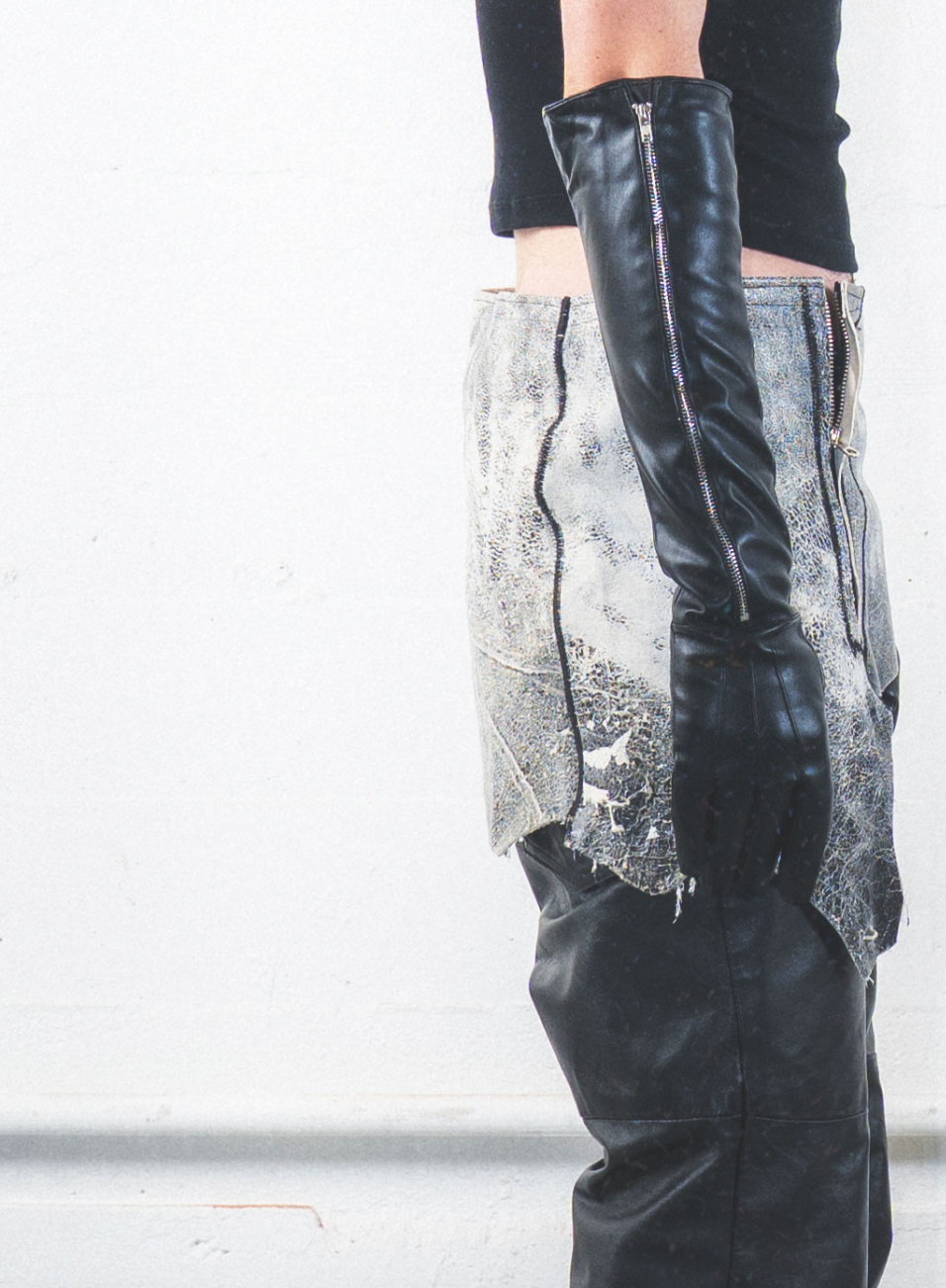 _ Zip leather glove